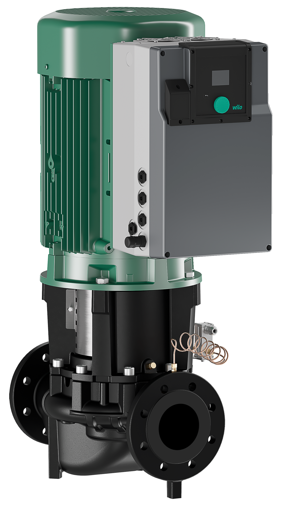 Electronically controlled glanded single pump in in-line design with flange connection and automatic power adjustment.